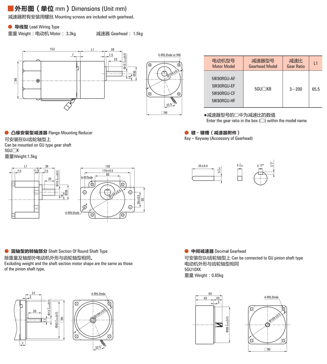 輸出特點:實心軸輸出